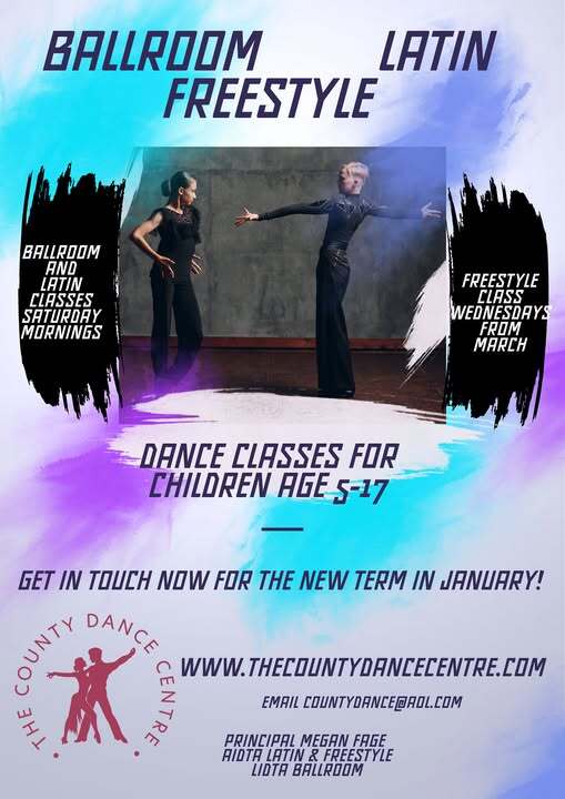 HERE AT THE COUNTY DANCE CENTRE WE TEACH BALLROOM, LATIN AND FREESTYLE TO CHILDREN FROM AGES 5-17